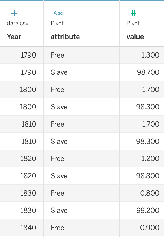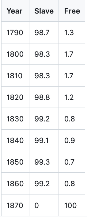 The data consisted of three numeric fields: Year, Slave, Free